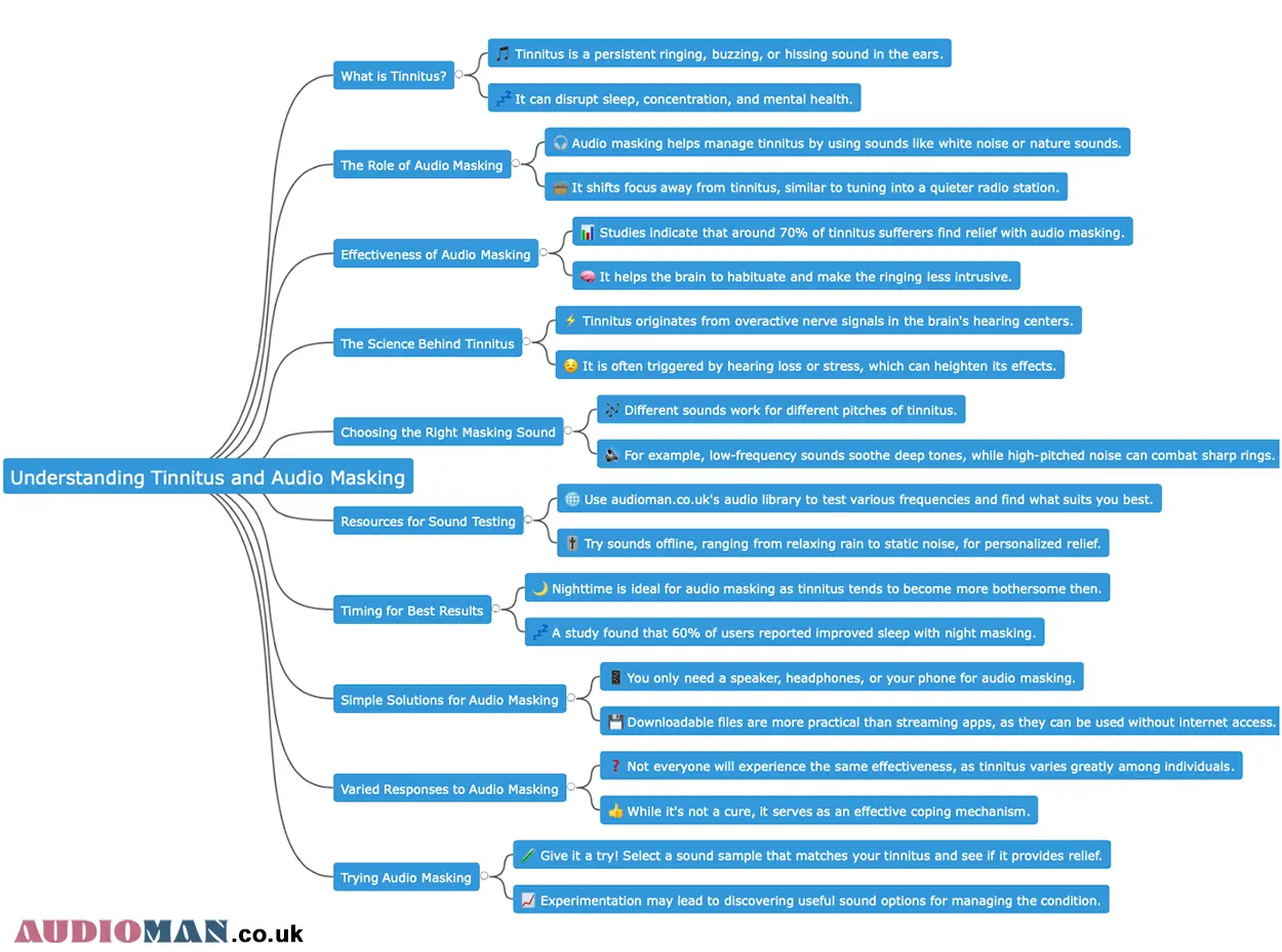 Following many years of suffering from ringing in the ears, the discovery of audio masking was a relief to find. With many files available for streaming online, it became apparent that although certain frequencies were commonplace, the variety of pitch and type of sound that people suffered was vast.